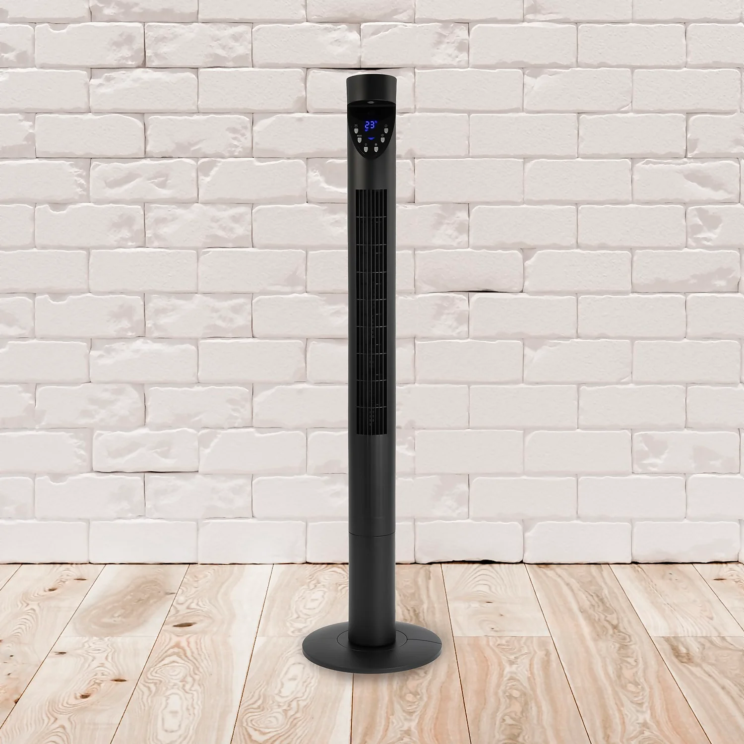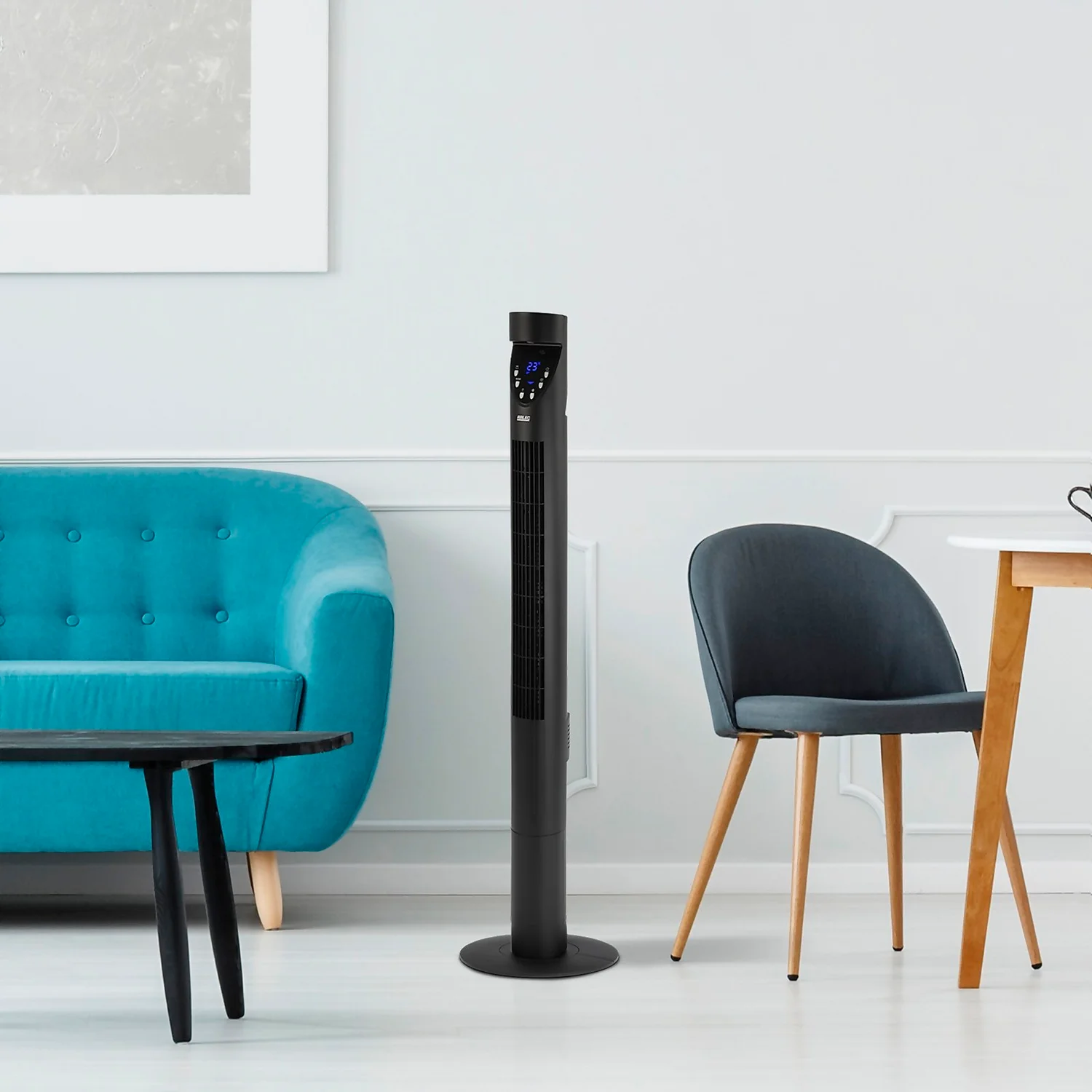 This sleek modern 46 inch tower fan with full function soft touch control provides 3 speed settings and 3 fan modes to suit your cooling needs. A perfect choice for any room.
