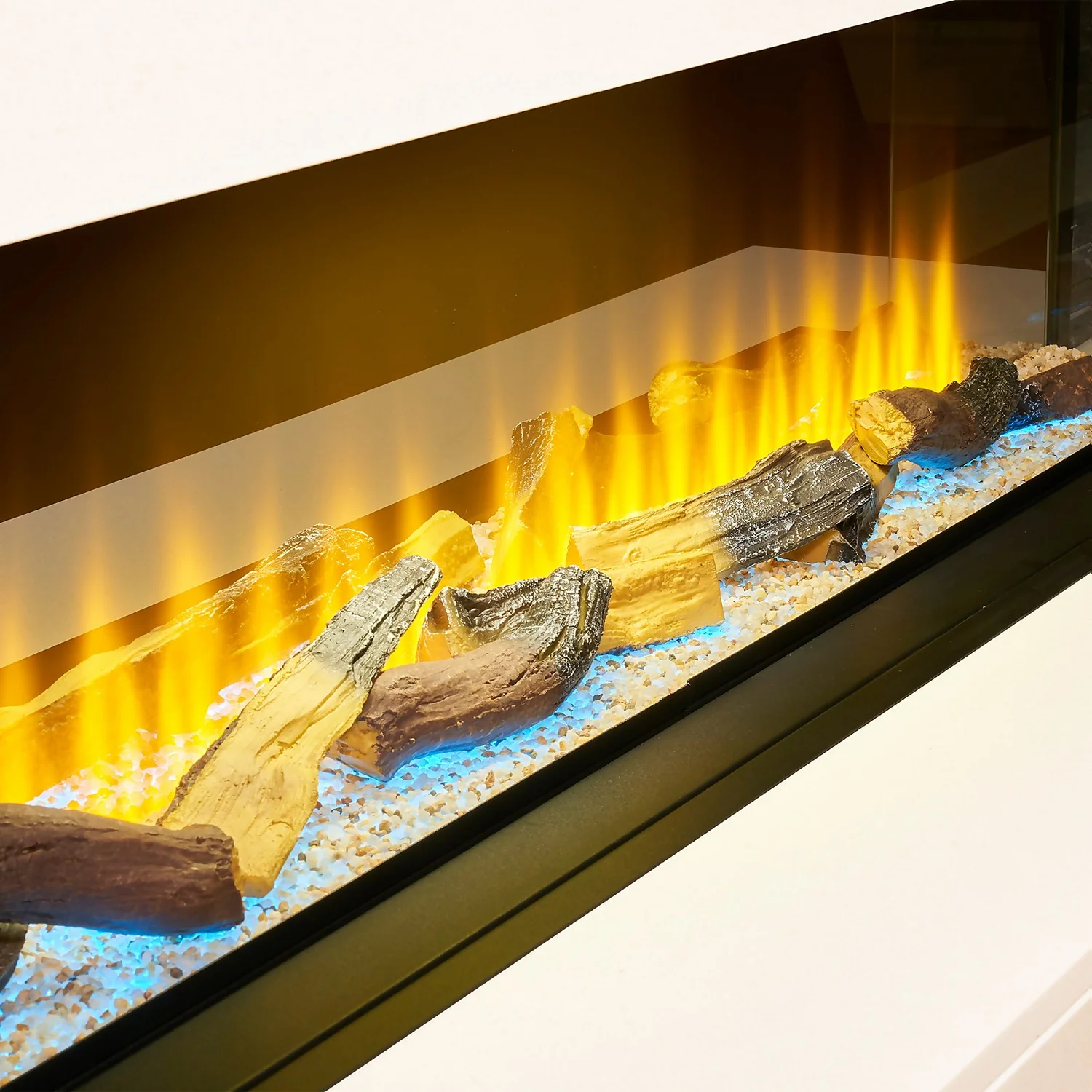 The Acantha Aspen marble fireplace suite is supplied with LED downlights which complements the electric fire which offers an atmospheric log fuel bed, 3D LED flame effect technology and seven colour settings. You also get a heat output of 1kW and 2kW which can be operated by the supplied remote control on a 7-day programmable timer. The Acantha Aspen is finished in our exquisite white marble with slate side panels and once installed we guarantee it will be the absolute focal point of your room.