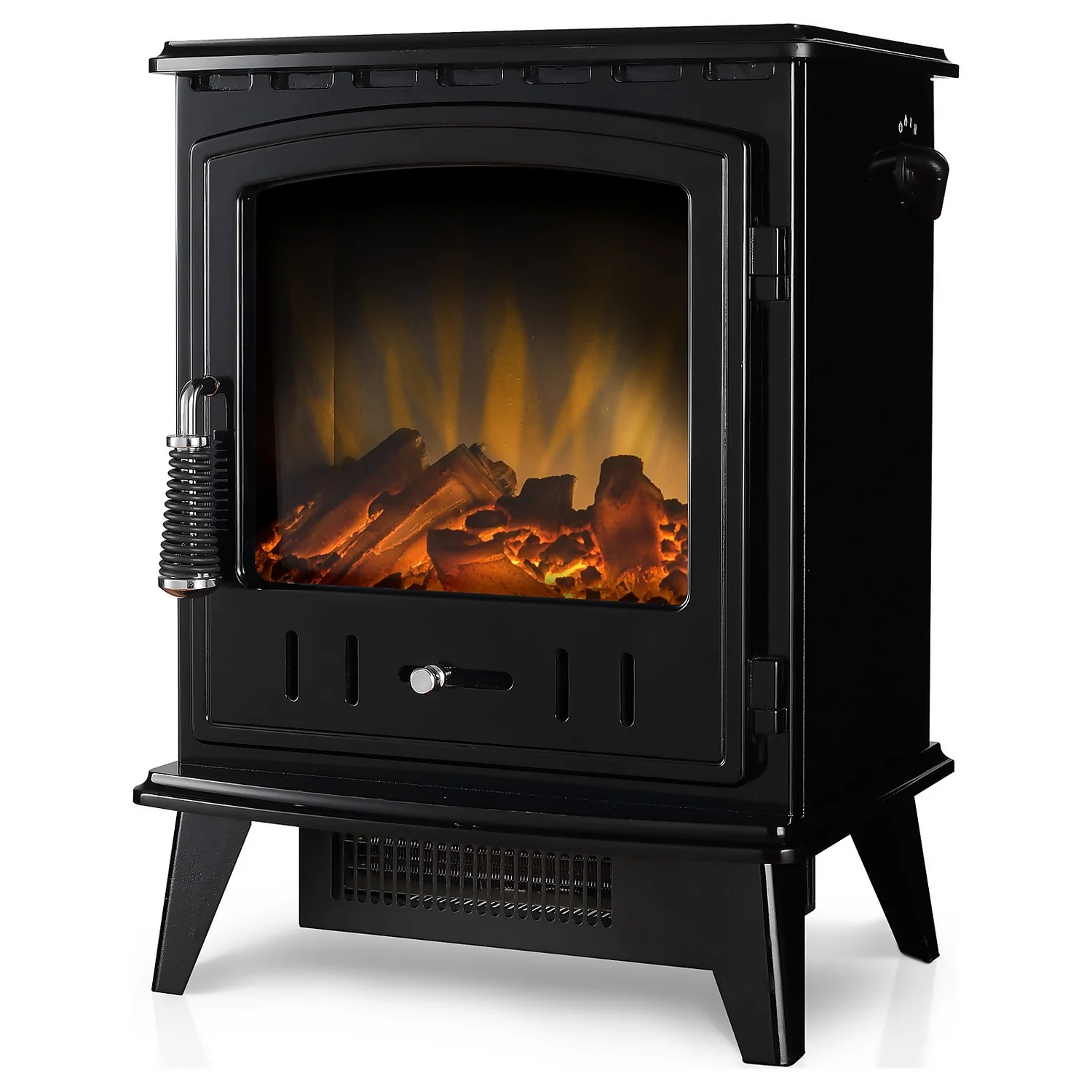 The Adam Aviemore electric stove features an excellent realistic LED flame effect and log effect fuel bed. The stove can be operated by the manual dial on the side of the stove along with the thermostat. The Adam Aviemore electric stove can be set up perfectly with your wooden, marble or stone fireplace.