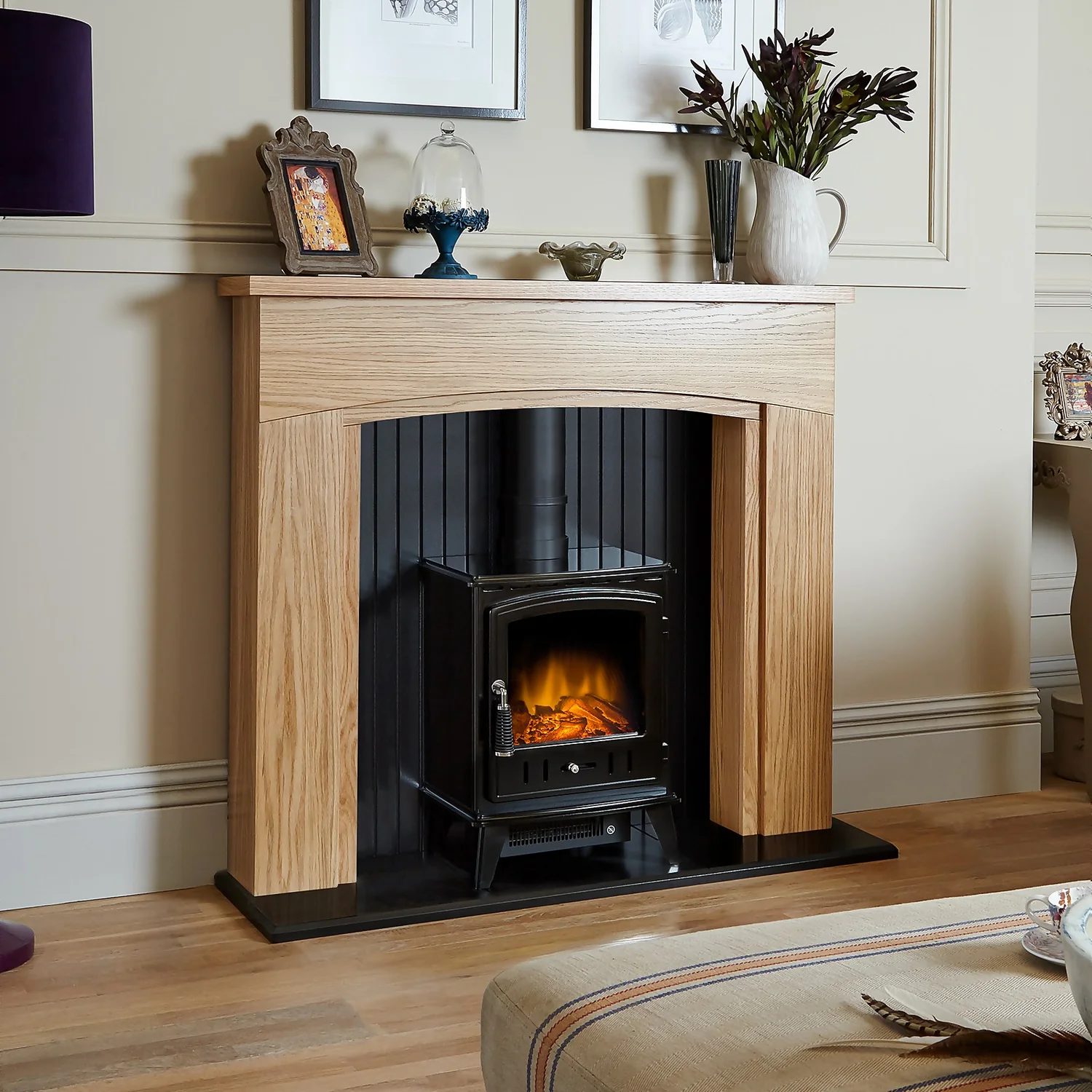 Αδάμ Adam Aviemore Electric Stove With Realistic Log Bed & LED Flame Effect Flat To Wall Fitting – Black