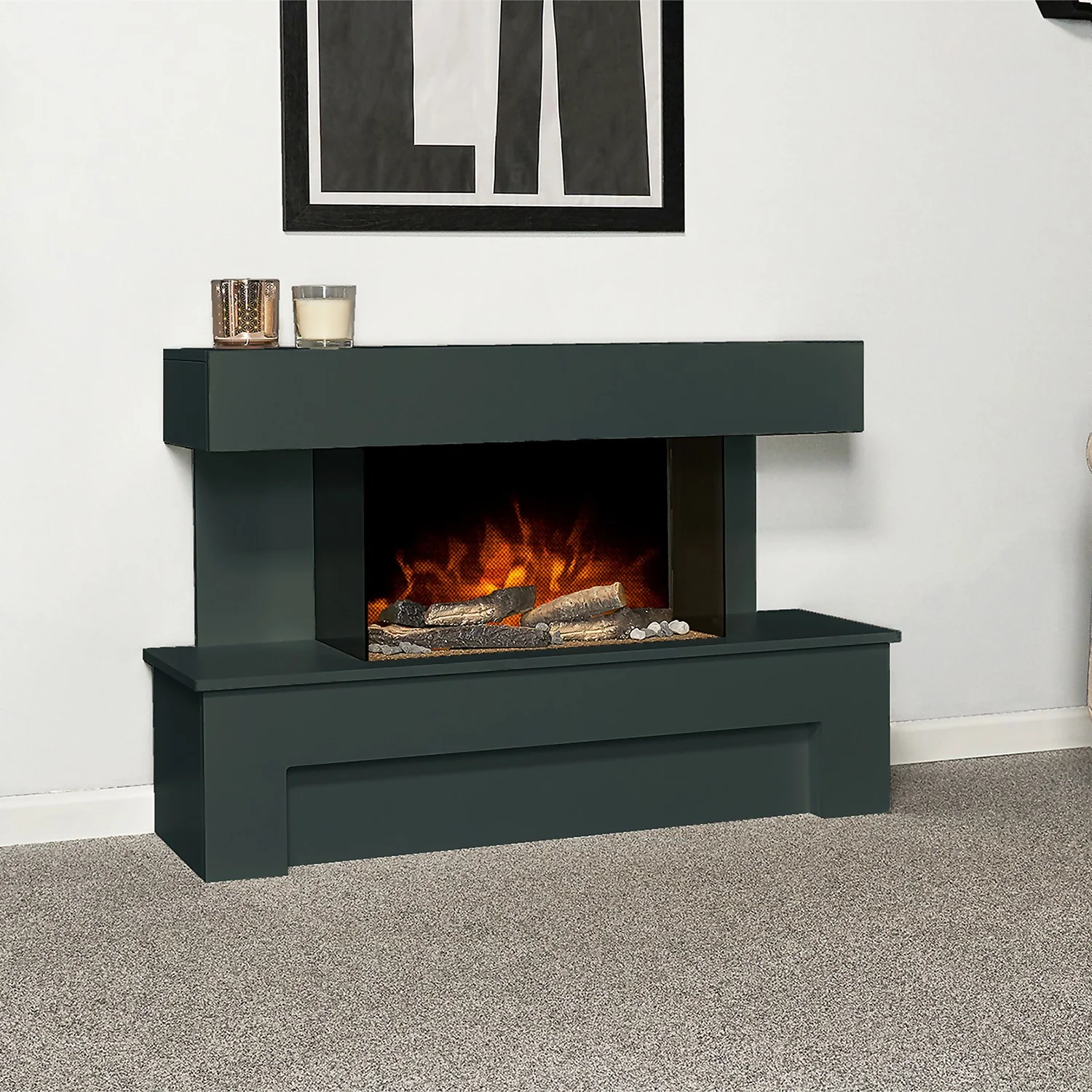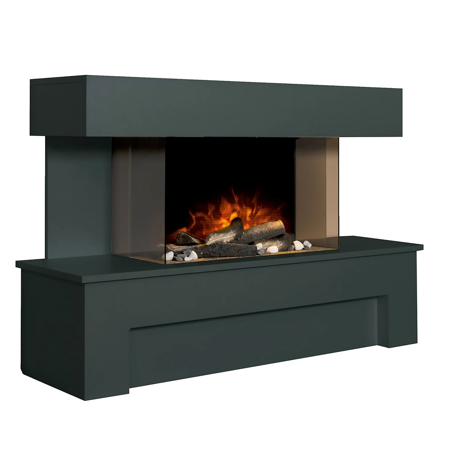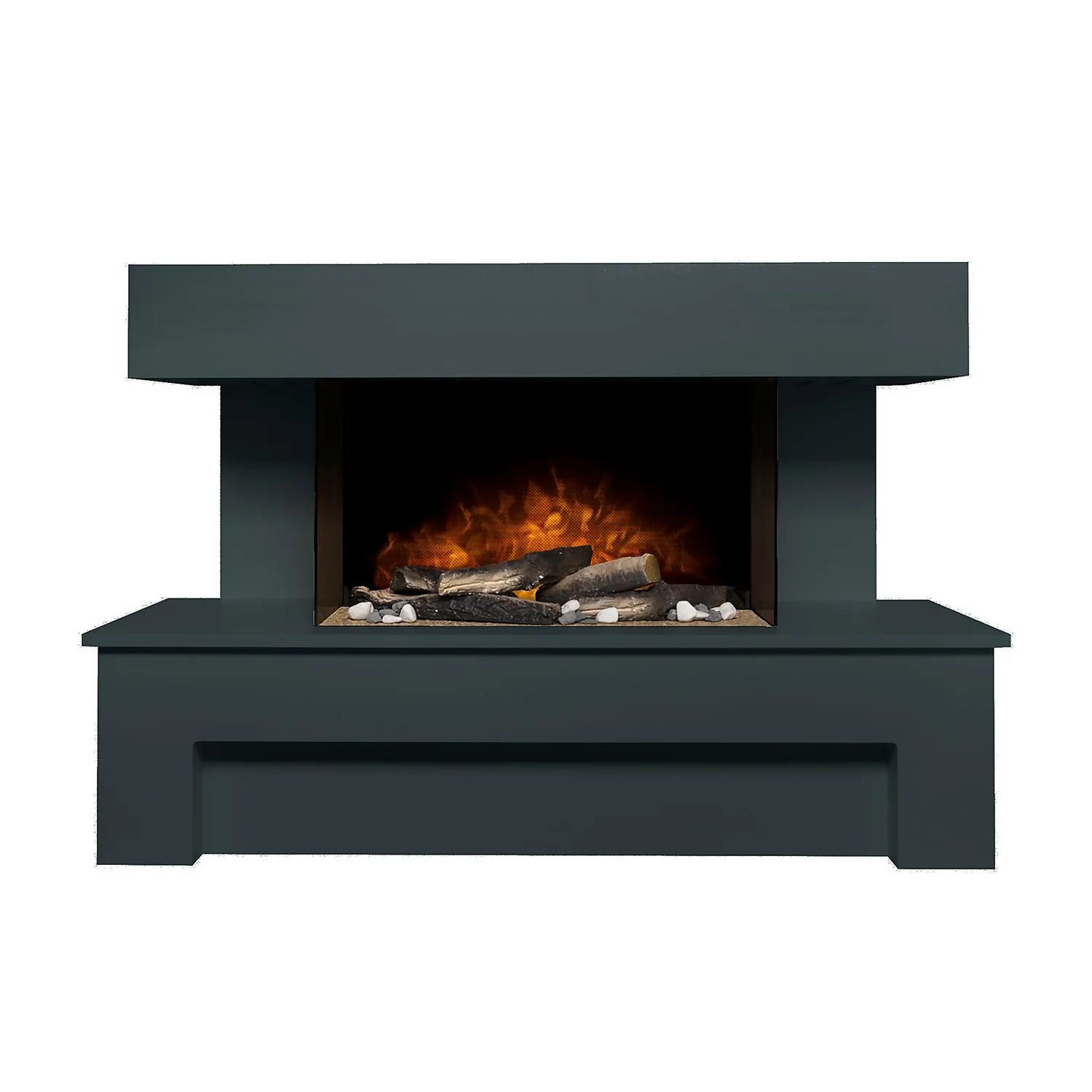 The Adam Havana is a stylishly modern electric fireplace suite. Finished in a smooth, charcoal grey finish with a reflective glass back panel, the lighting effect illuminates the log and pebble fuel bed in such a way as to create a relaxing, glowing ember bed.