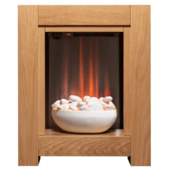 The Adam Monet electric suite is eye-catching and stylish, the insert holds an electric fire that simmers gently. The straight, oak lines of the surround have a decidedly minimalist allure, and combine with the white colour of the bowl and delicately glowing embers to lend your home an attractive, contemporary quality.