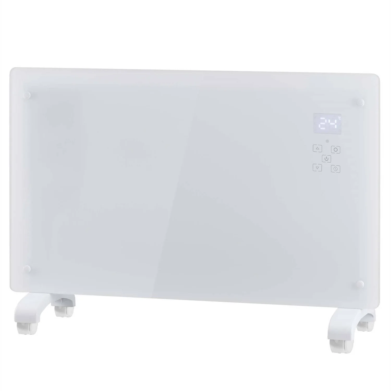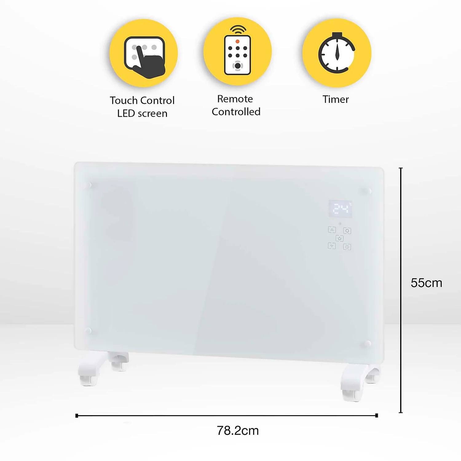 This stylish 2.2kW Arlec Glass Panel Heater has 2 heat settings: 1100W/2200W, an electronic adjustable thermostat and timer from 1 to 24 hours.