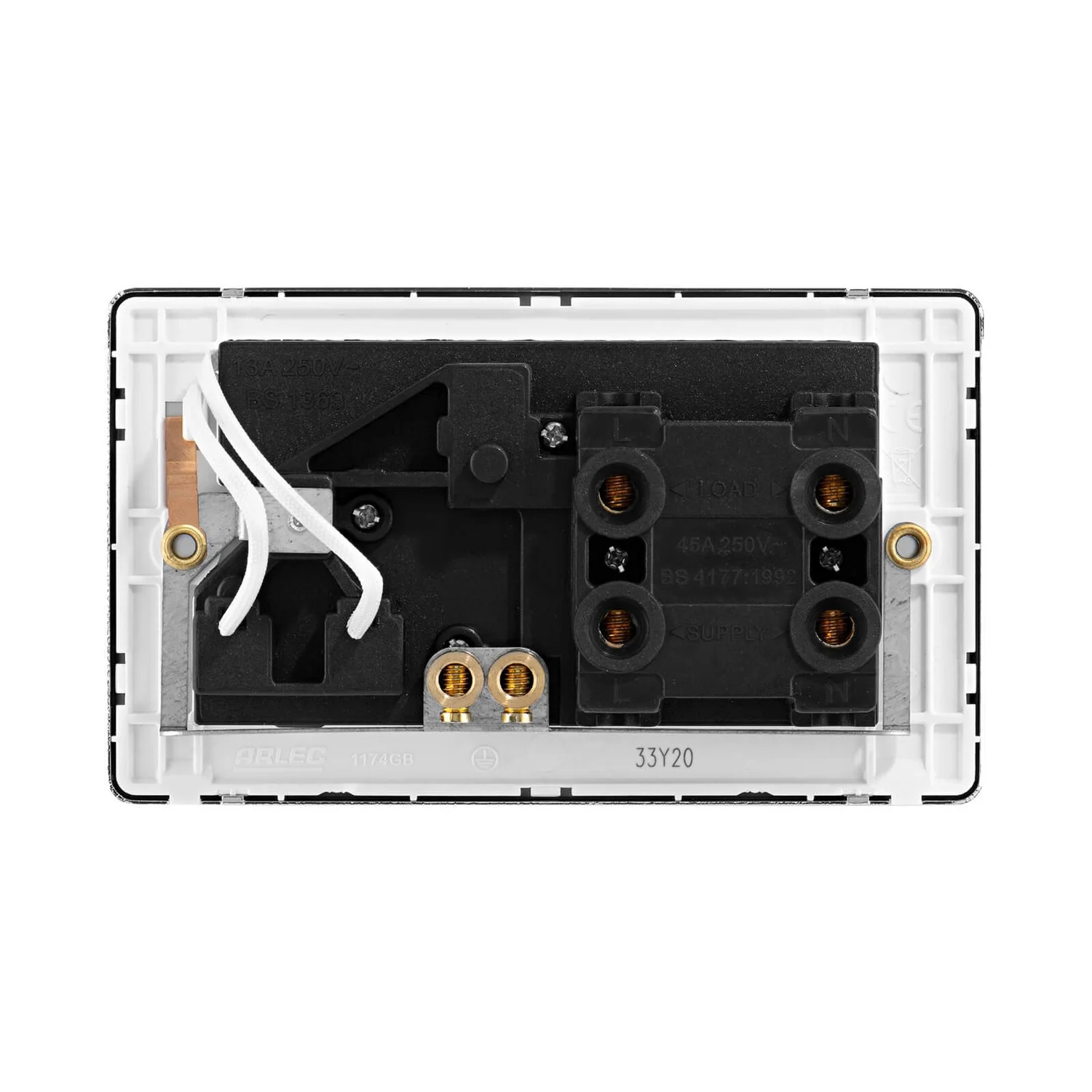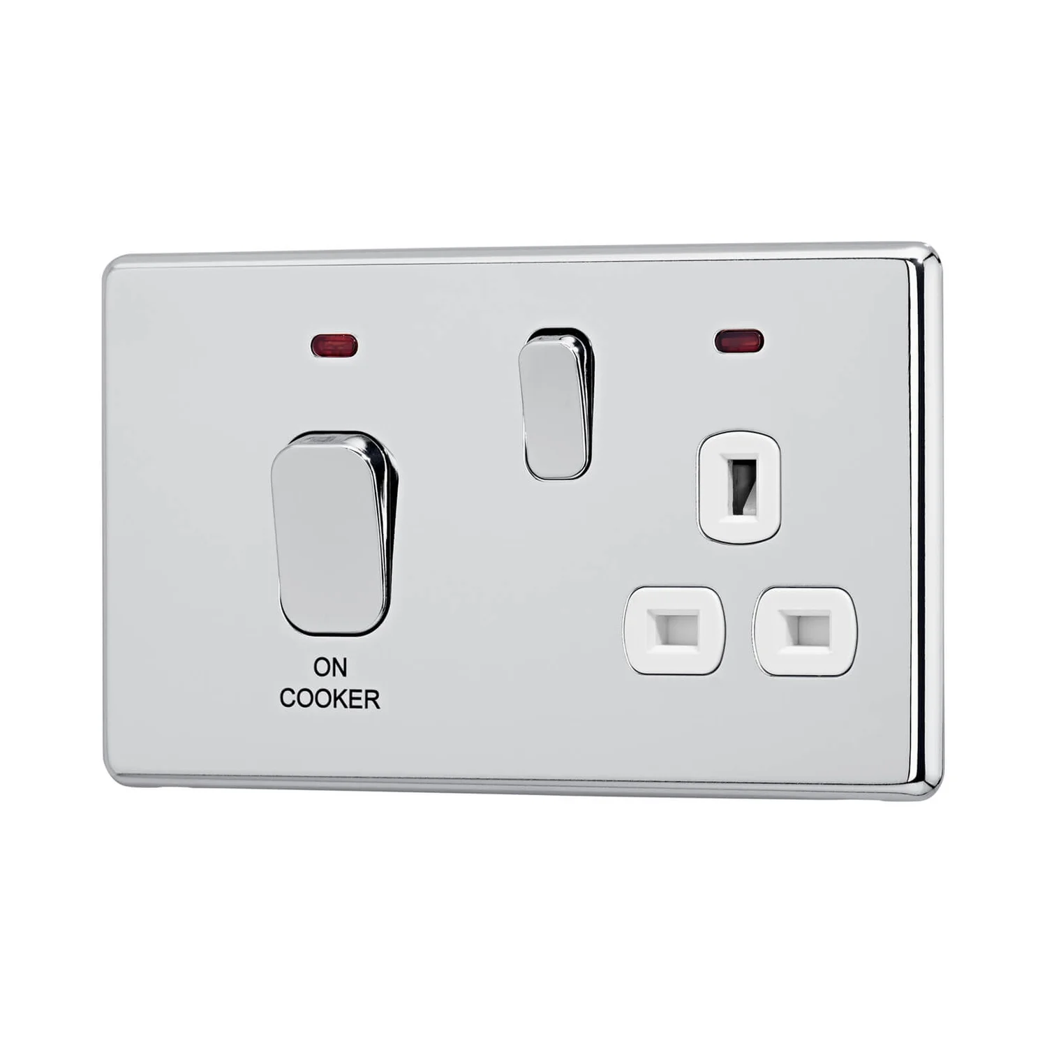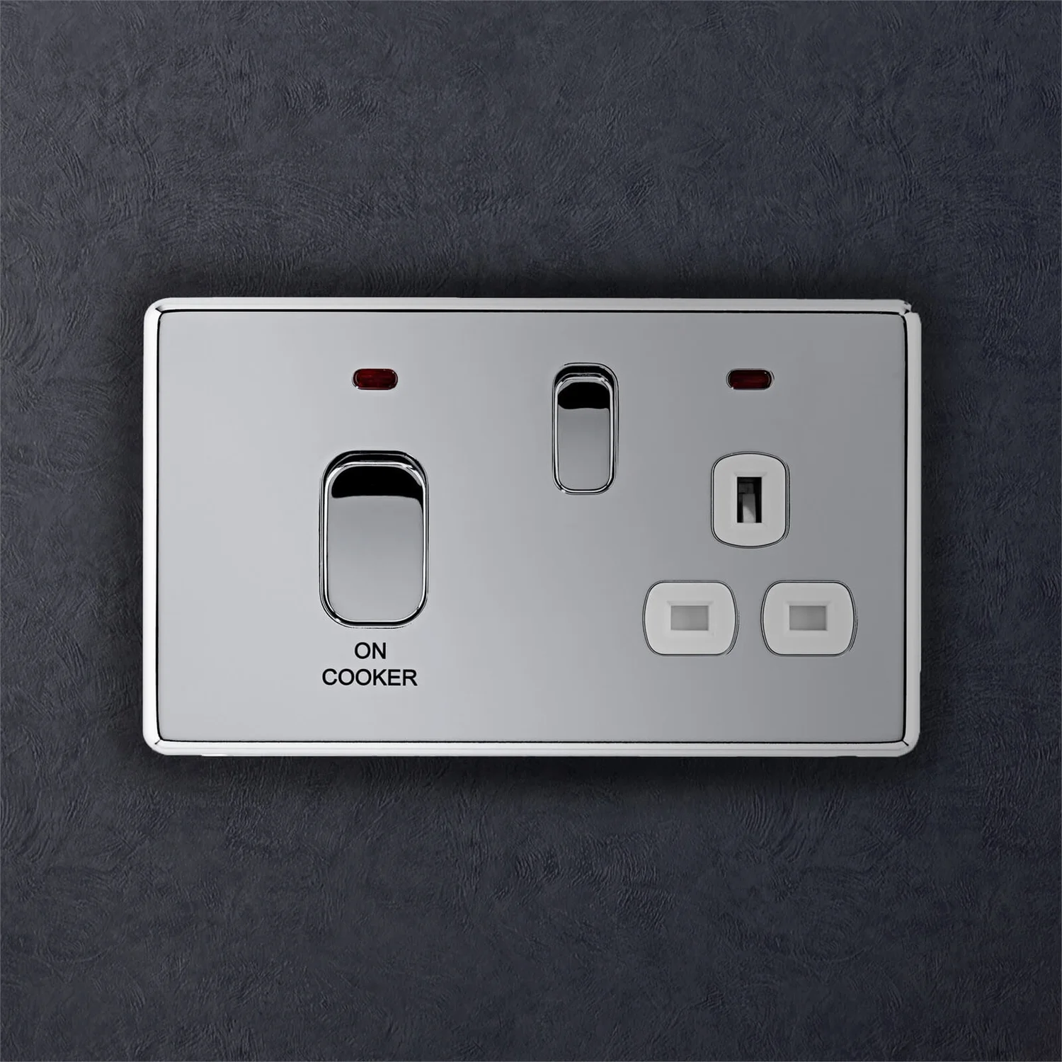 Be on trend with the Fusion Polished Chrome cooker switch. The premium metal font plate has a mirror like sheen and is screwless and removable which is handy when you come to decorate. Terminals are colour coded with captive screws to aid installation