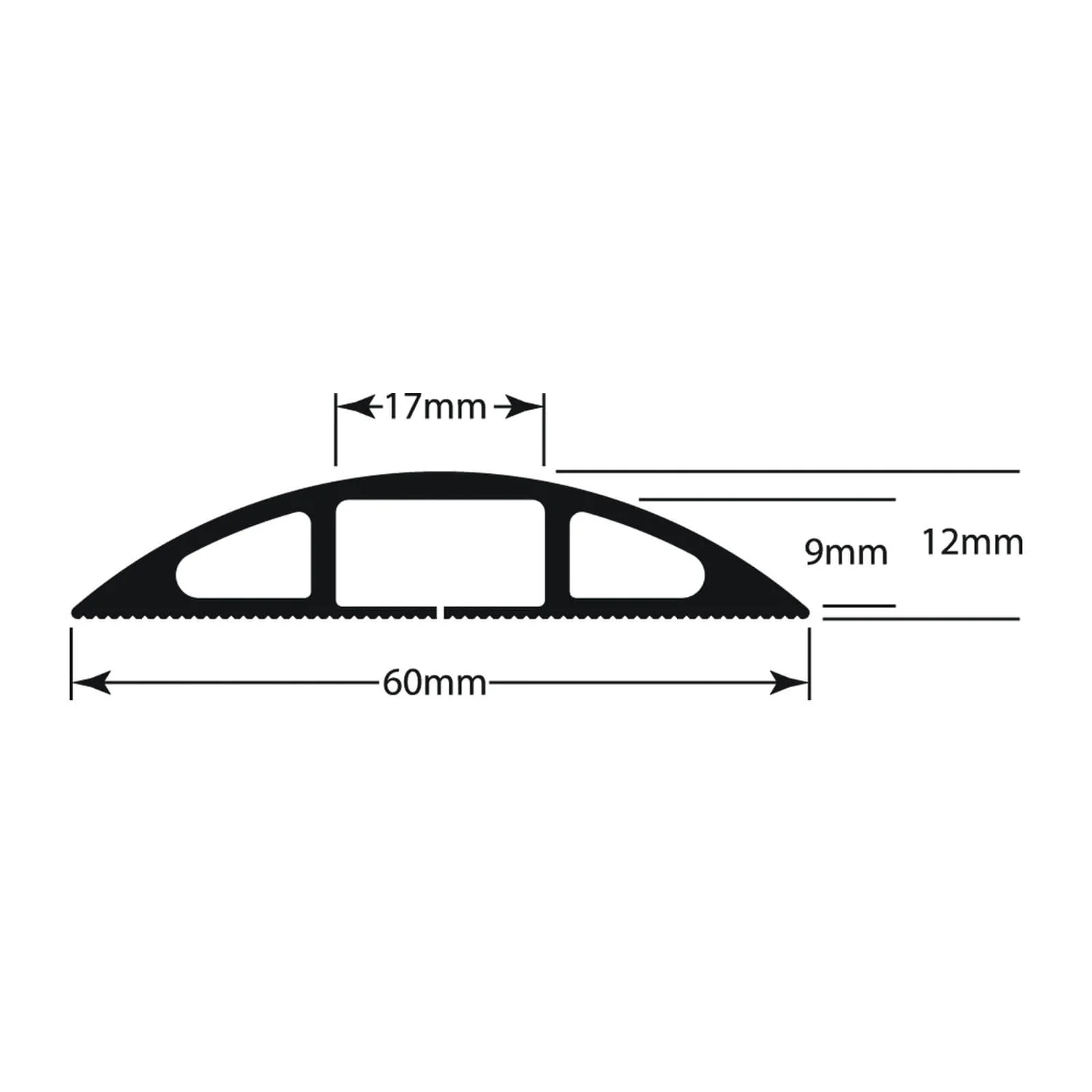 - D-Line Light Duty Floor Cable Cover Dimensions: 1.8m (L) x 60mm (W) x 12mm (H) Inner Channel = 17mm (W) x 9mm (H)