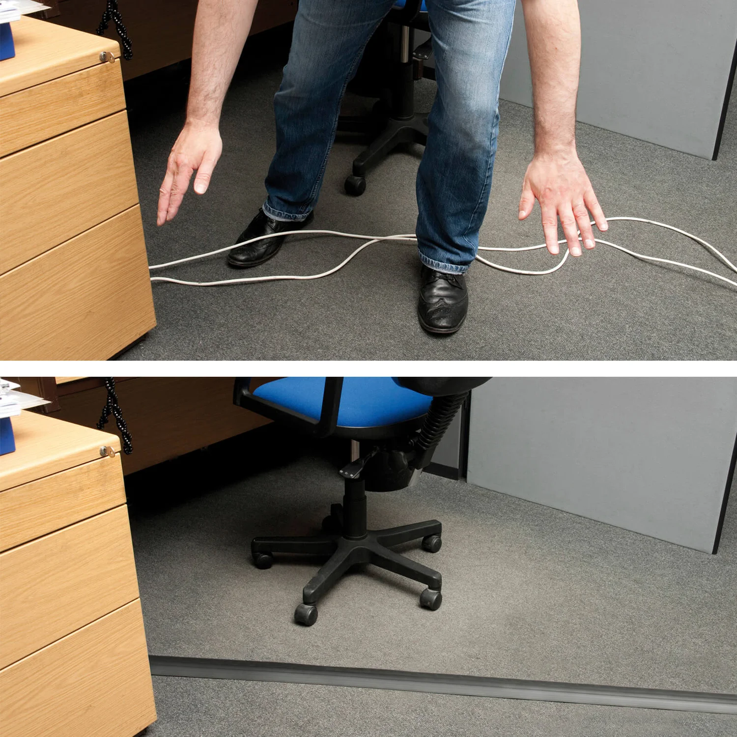 D-Line floor cable cover has a pre-split backing to easily cover and protect cables. made from highly flexible, abrasion resistant PVC which effectively uncoils to lay flat.