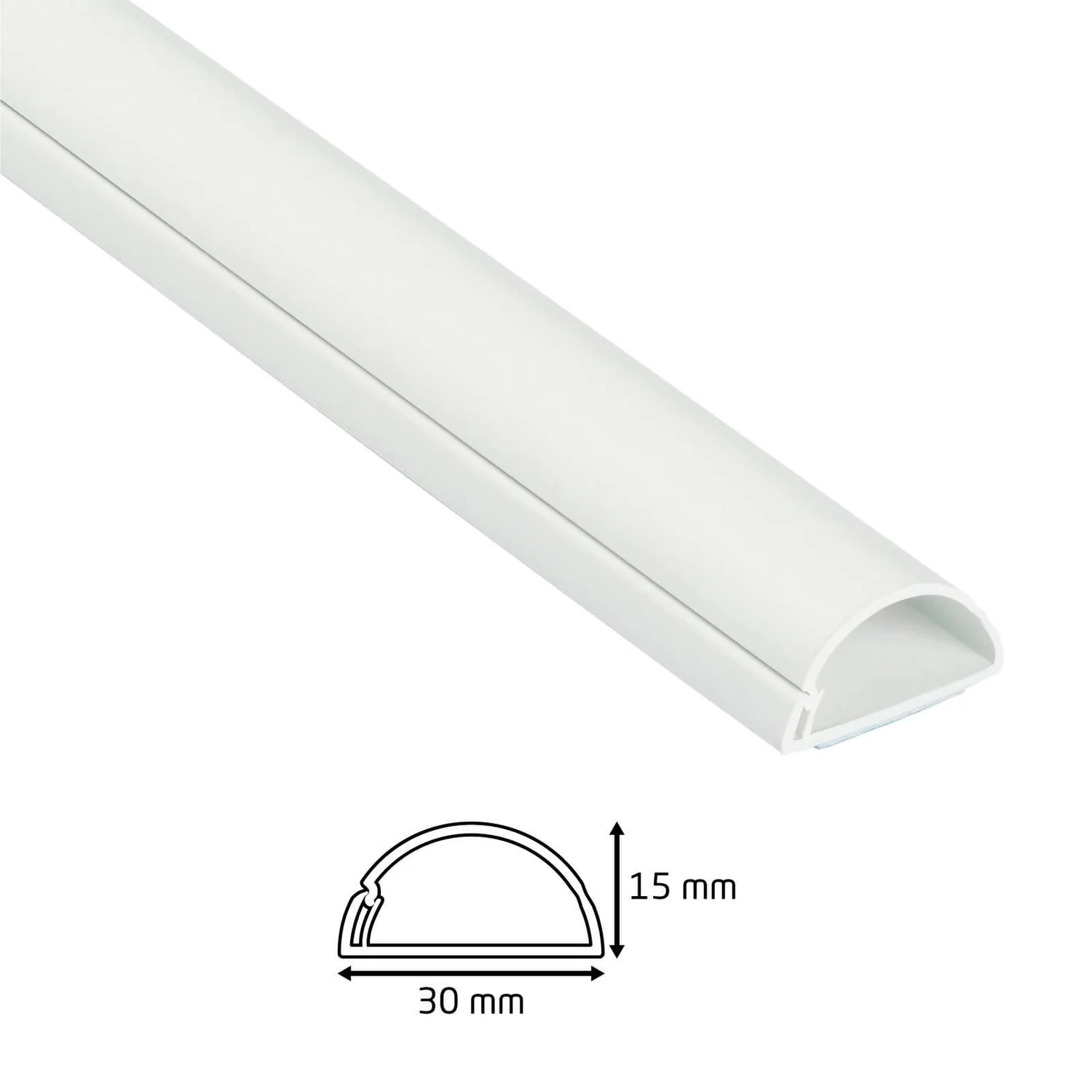 D-Line 30mm (W) x 15mm (H) Mini Cable Trunking provides a subtle appearance to make surface cable installations look great! The ½-round profile blends above skirting board, with the profile appearing as the natural top-section! D-Line trunking is a popular modern solution to conceal vertical cable drops, and cable runs across ceilings. This versatile trunking can neatly blend with décor, or colour contrasts can create a striking visual feature.