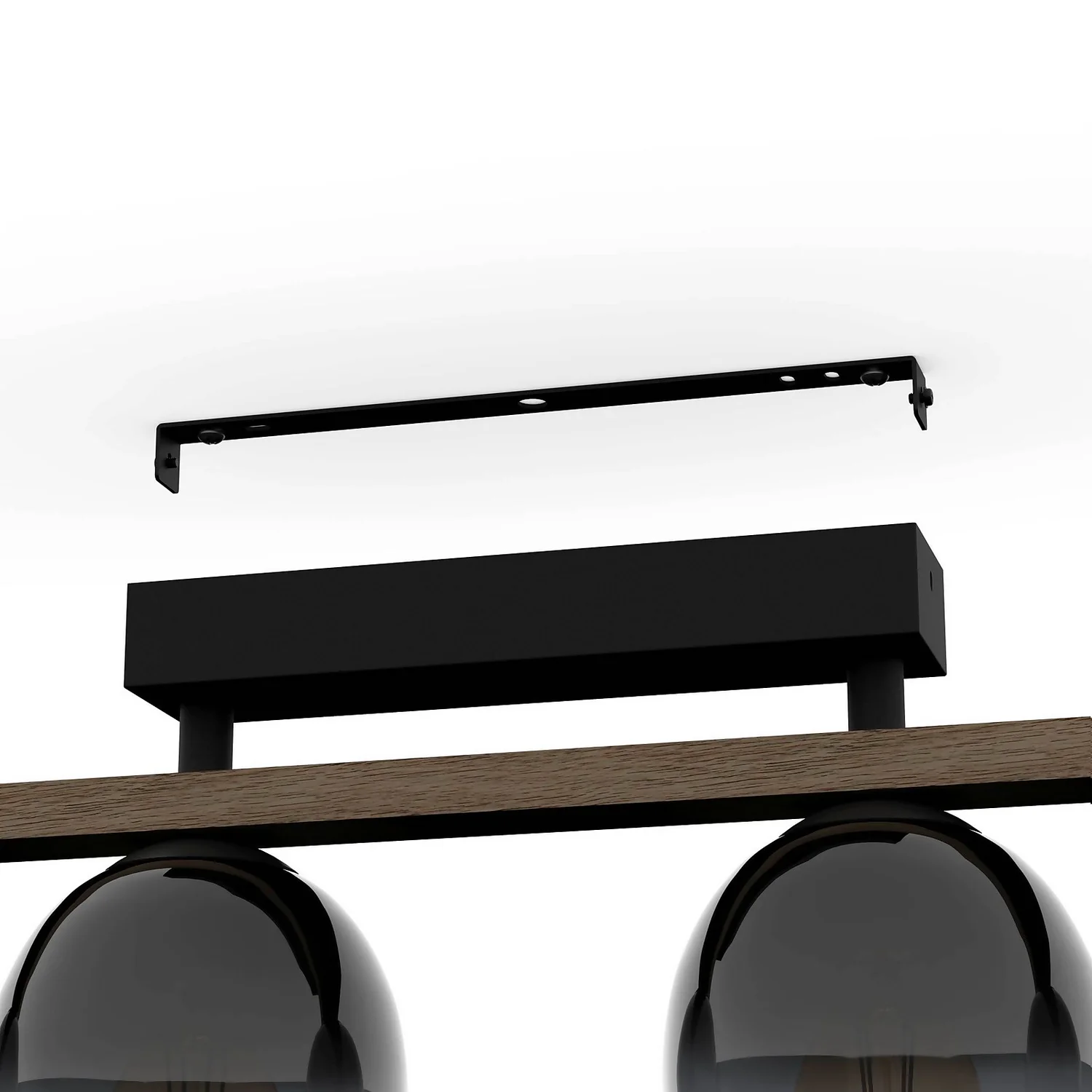 The FILAGO ceiling light features a pinewood beam in walnut brown combined with four round glass lampshades that fade from black to transparent. The black metal base beautifully complements the ceiling light’s elegant look. The product blends seamlessly into modern interiors, providing welcoming lighting in any space, whether in the kitchen, living room, bedroom or hallway. The product has E27 lamp holders and requires 4 x E27 lightbulbs, which are not included.