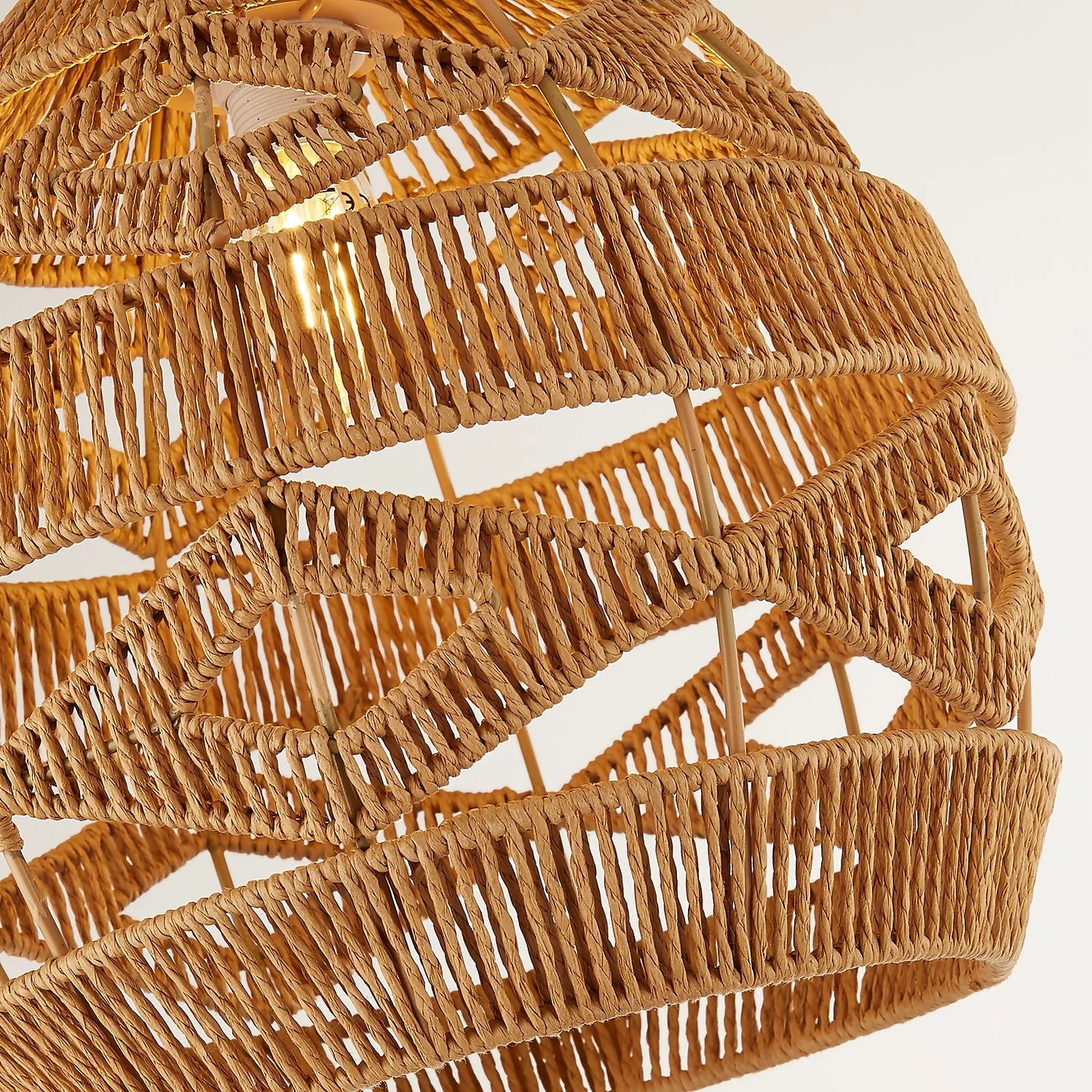 The Kai is a natural woven rattan shade with geometric design.