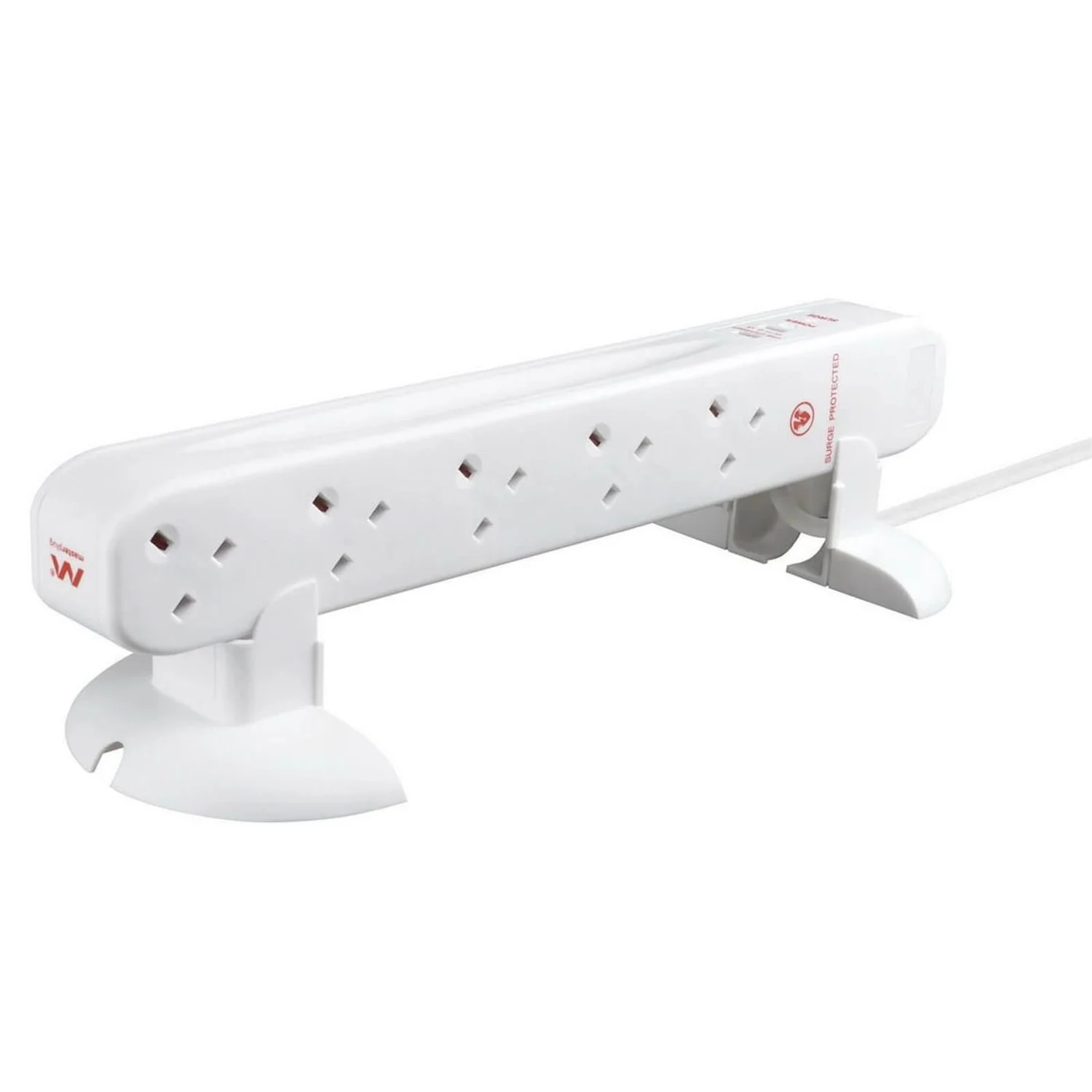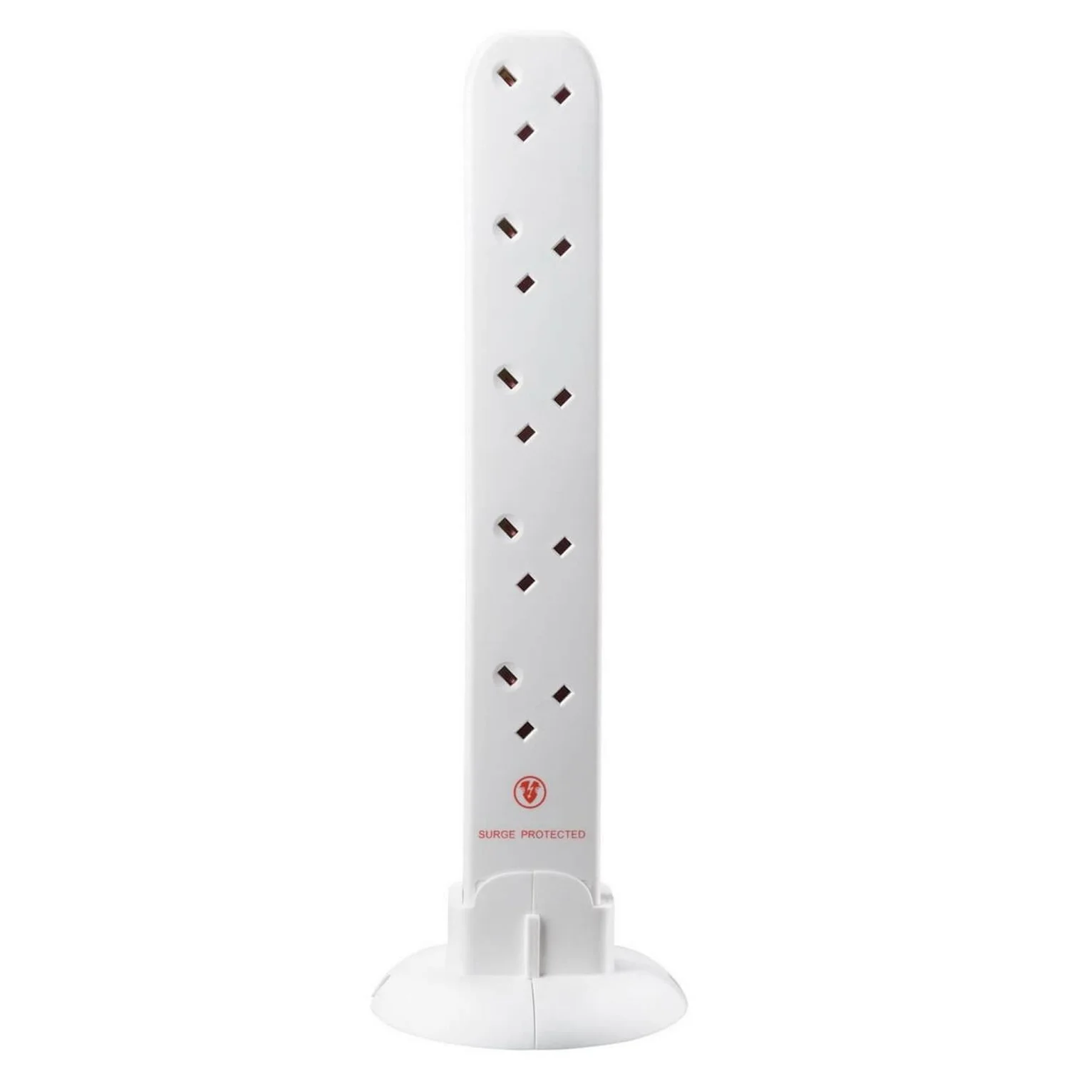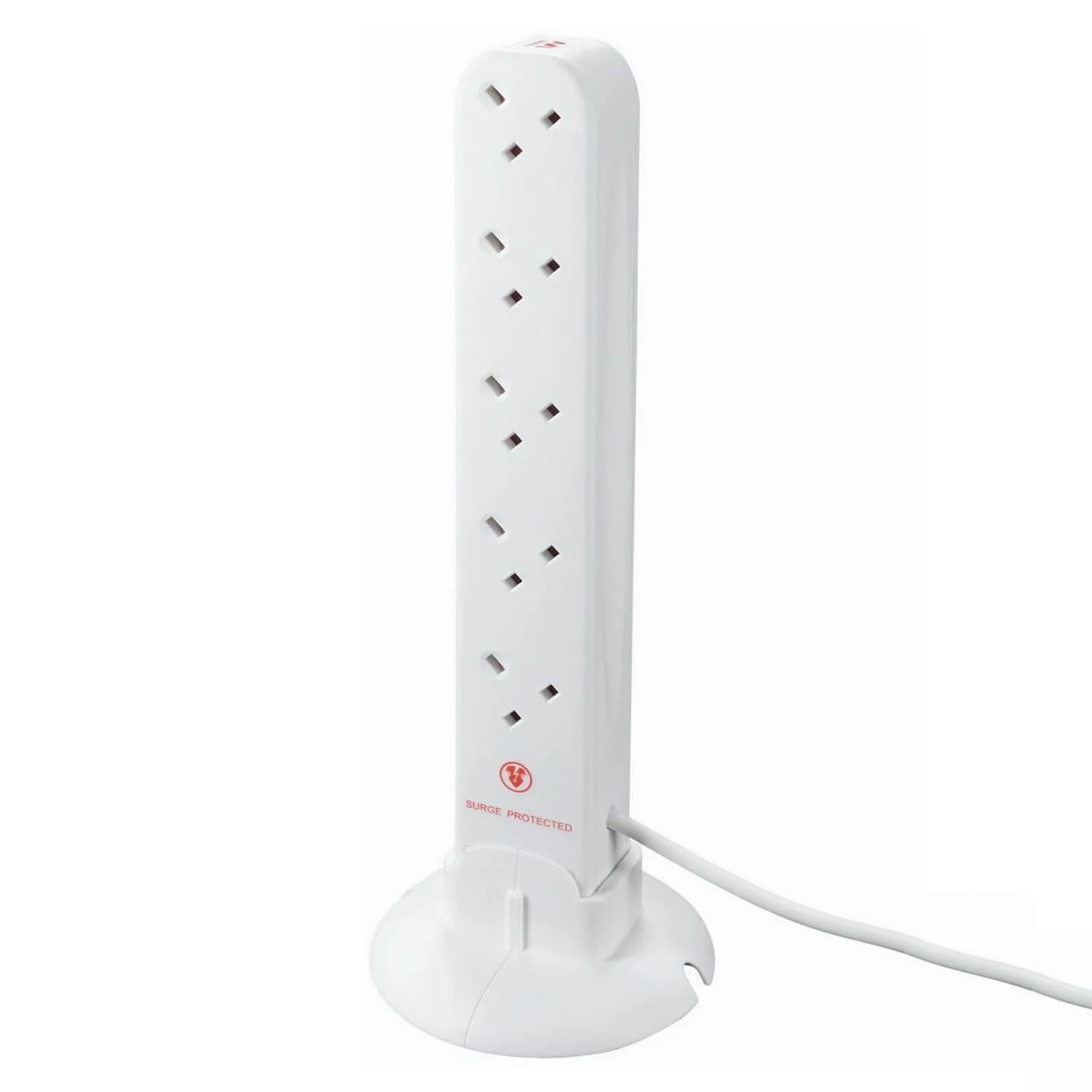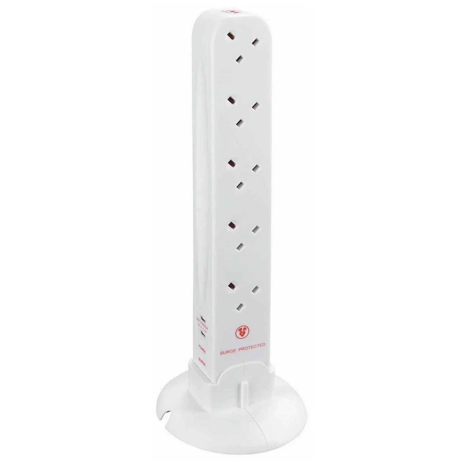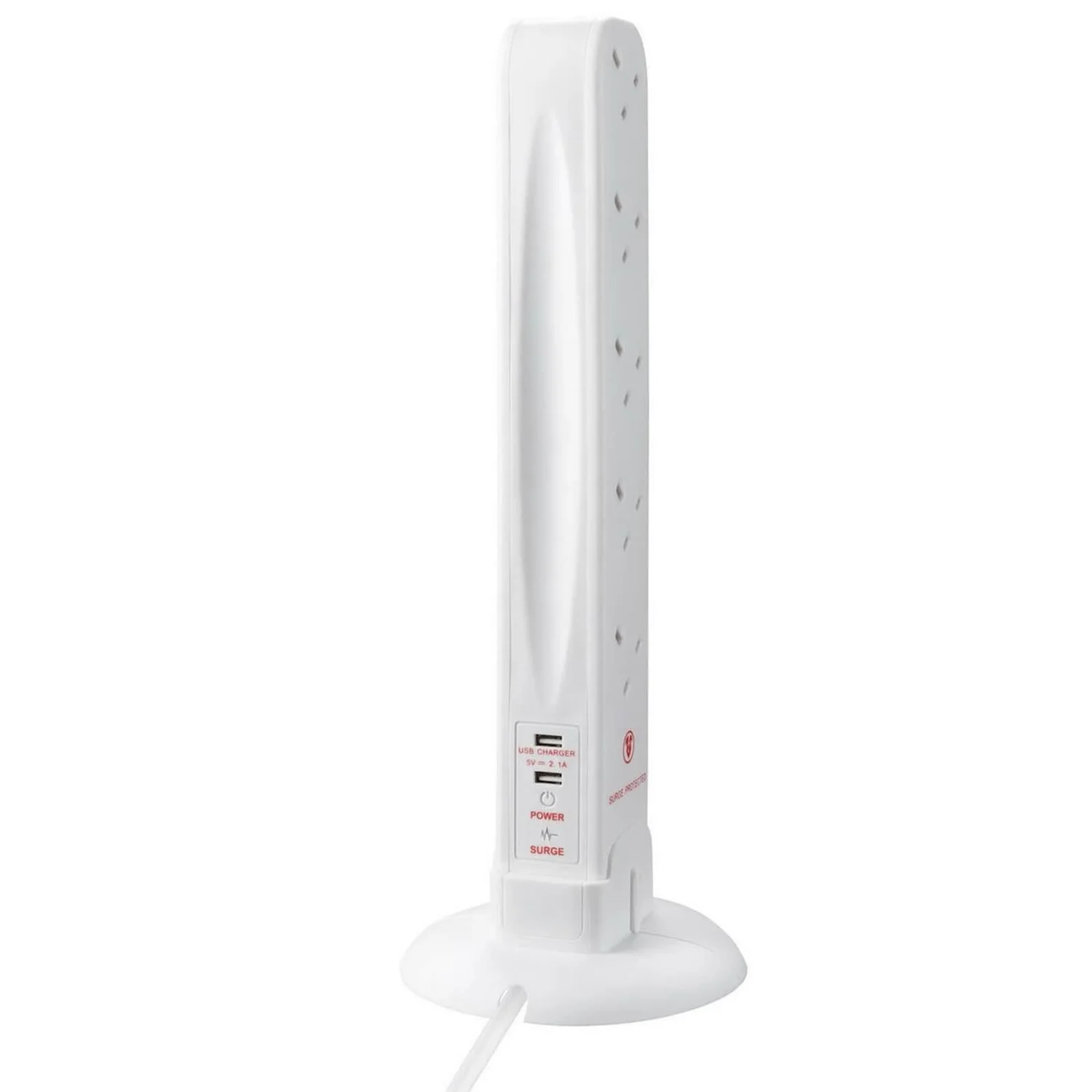 Masterplug 10 Socket 2 USB Surge Tower Extension Lead 1m White