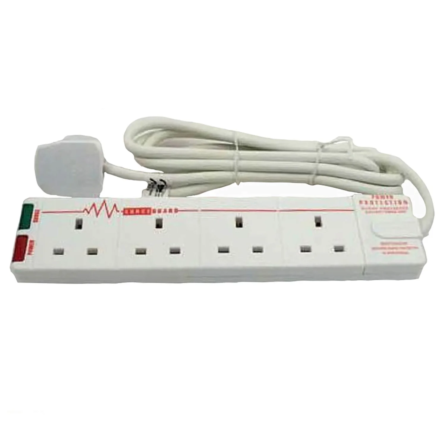 Perfect for the family home, this four way socket lead allows you to plug four or six items safely into one socket. With two metres of cable, this product protects valuable electrical equipment from surges and spikes. Power and surge indicators help to show that you are connected and protected