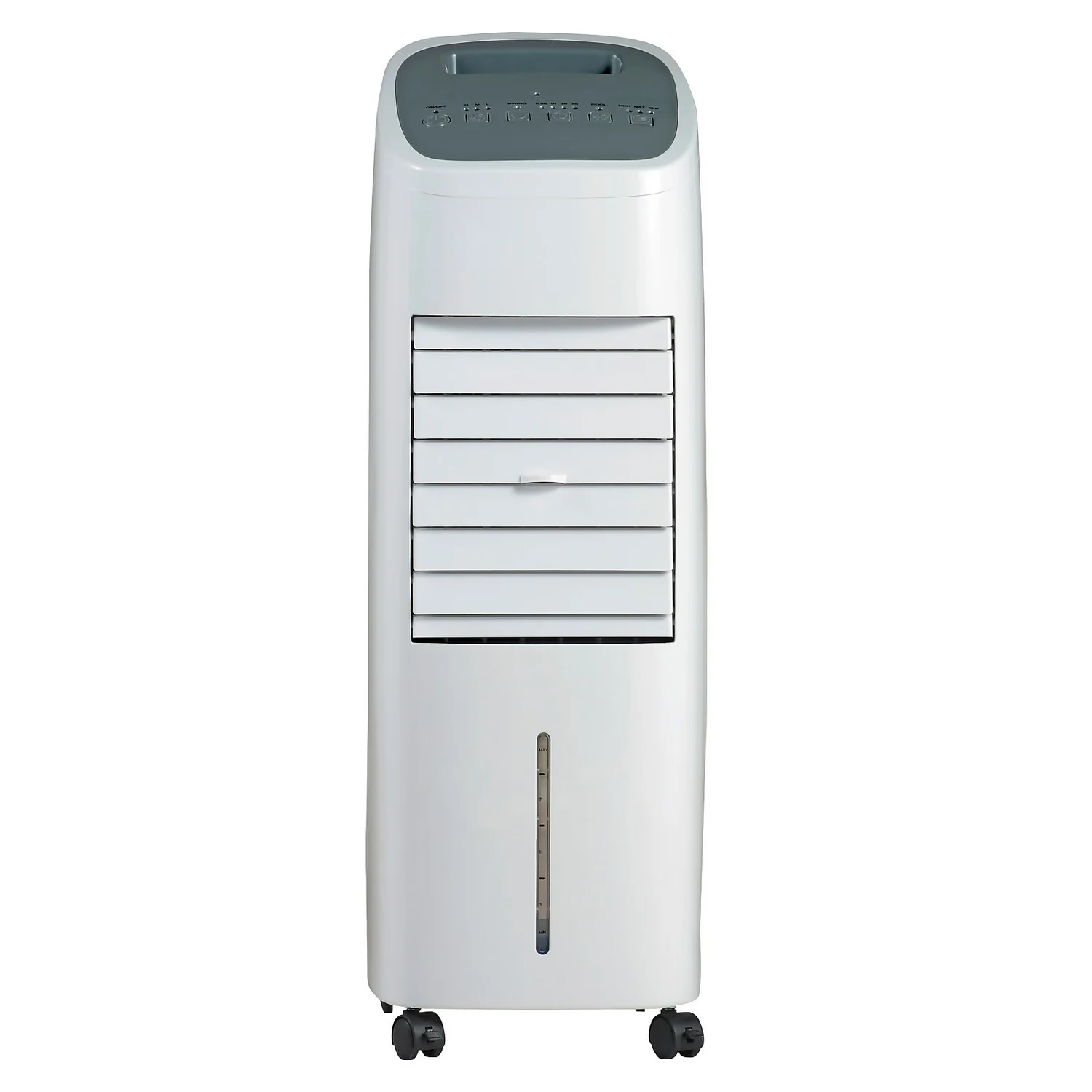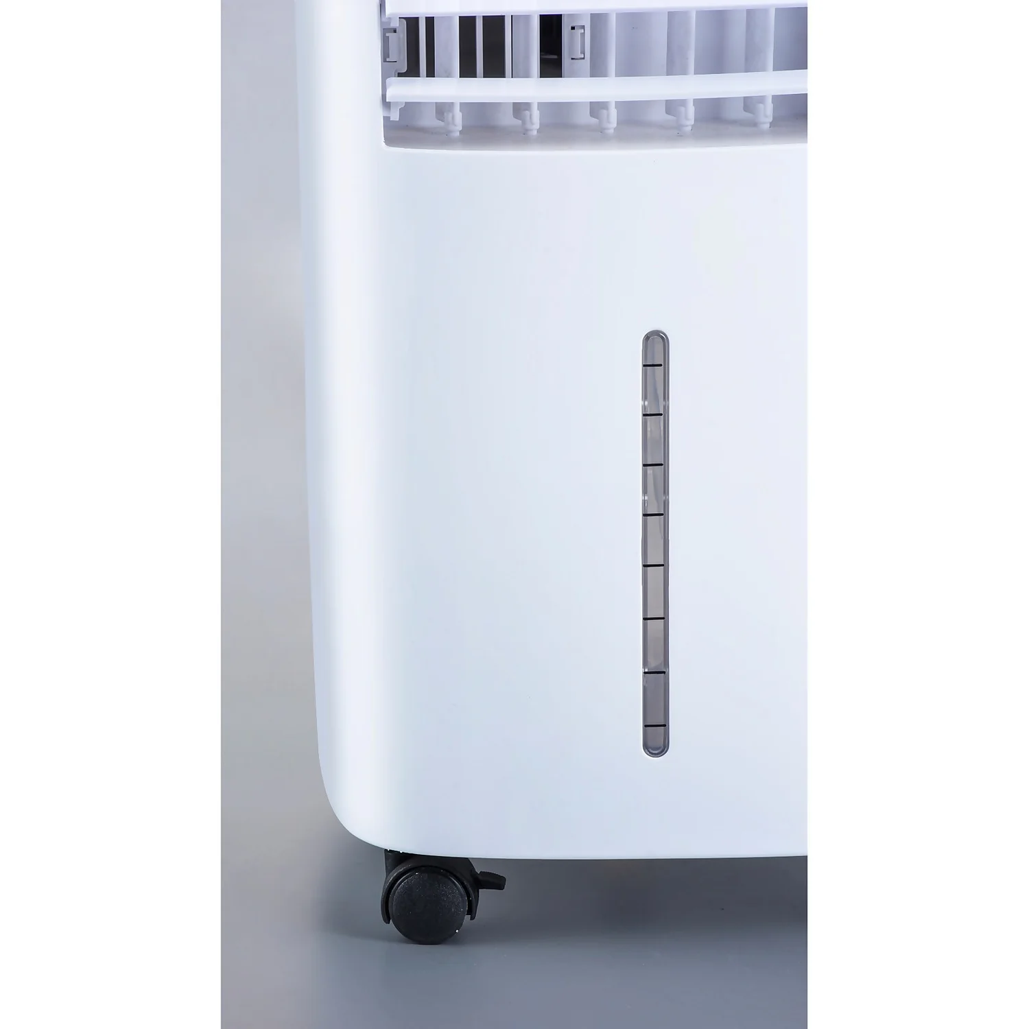 Powerful 3 speed air cooler, featuring an electronic soft touch control panel and remote control. Uses water and ice blocks to cool.