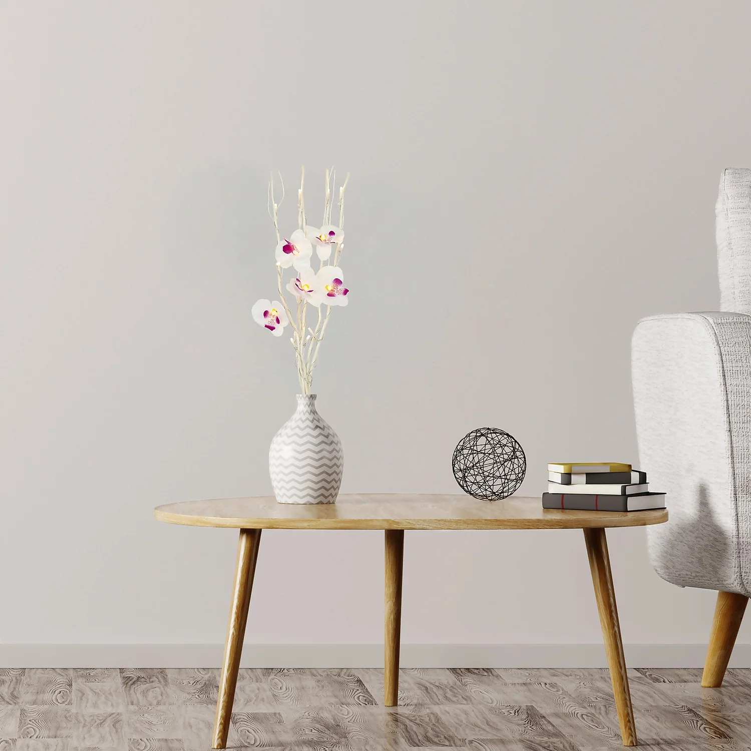 Small faux orchids and warm white fairy lights are wrapped around a clutch of 50cm rustic twigs to add a subtle glow to modern bedrooms and living spaces.