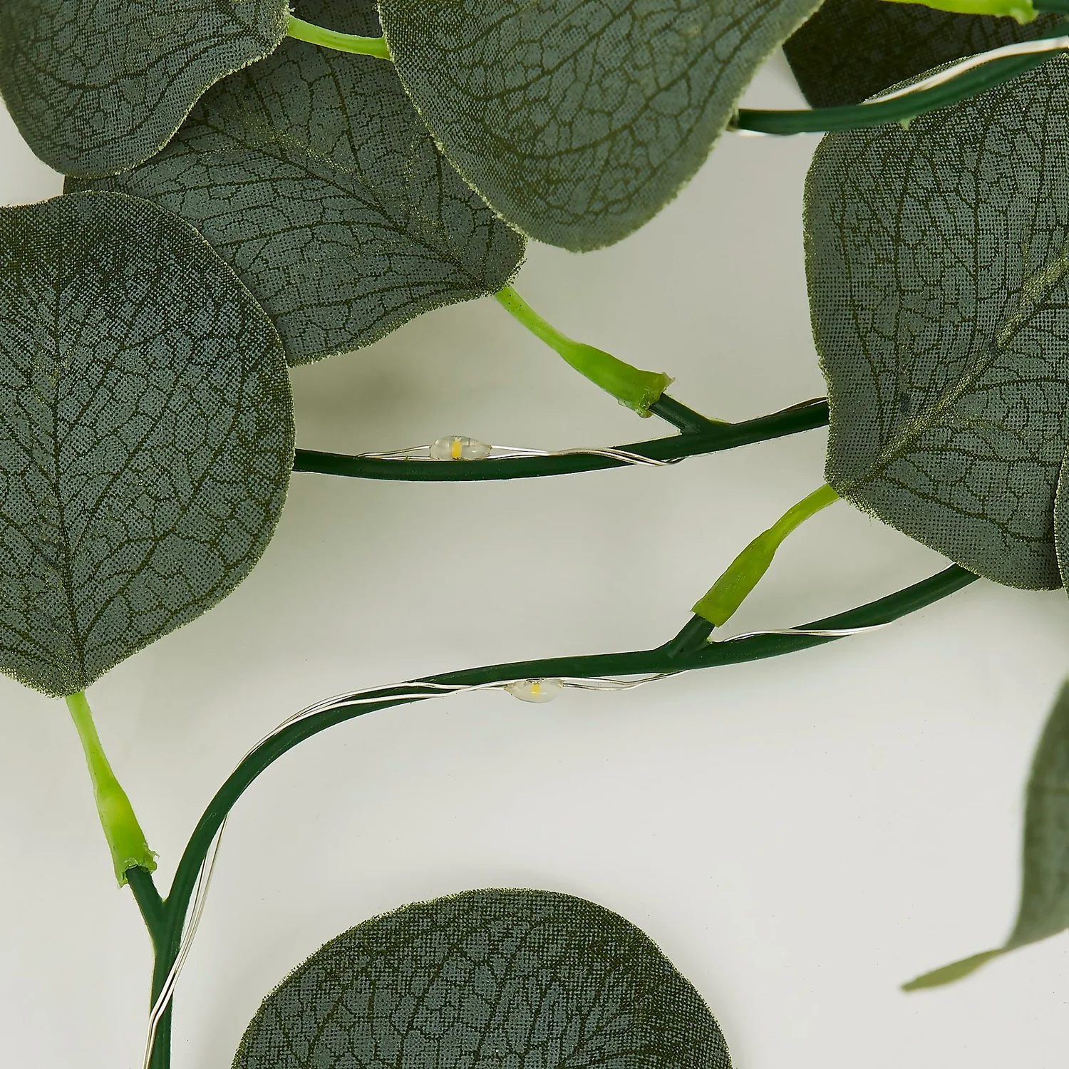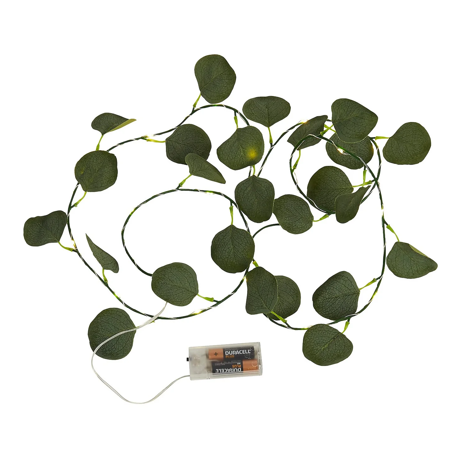Draped around a fire place, mirror or even used as part of a table centrepiece, this faux eucalyptus garland features 20 small lights for a subtle display.