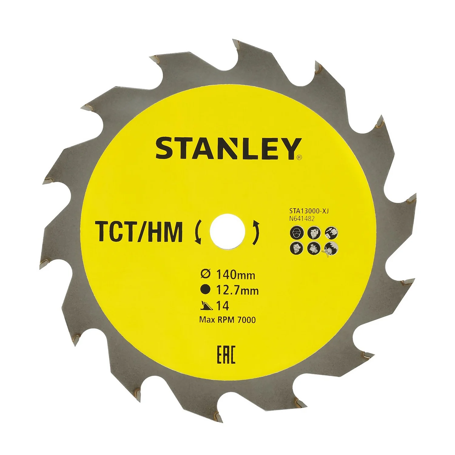 The STANLEY 140 x 12.7 x 14T TCT blade features a thick, full hardened body. The blade features 14 Tungsten Carbide tipped precision sharpened teeth for a fast and smooth cut which improves the quality of the cut and the performance of the saw. The blade makes cutting through materials with the saw effortless, increasing comfort over long periods of use making it ideal to tackle any project with ease.