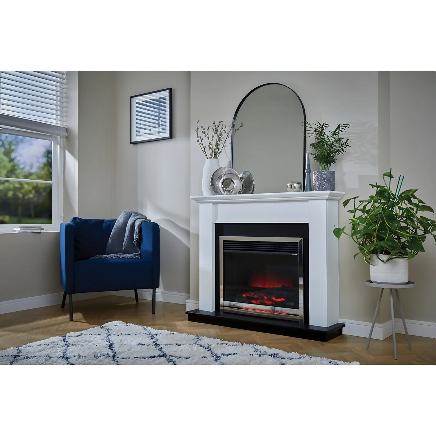 This traditionally styled electric fireplace features an integrated electric fire with stylish Chrome trim against a Graphite back panel and hearth.