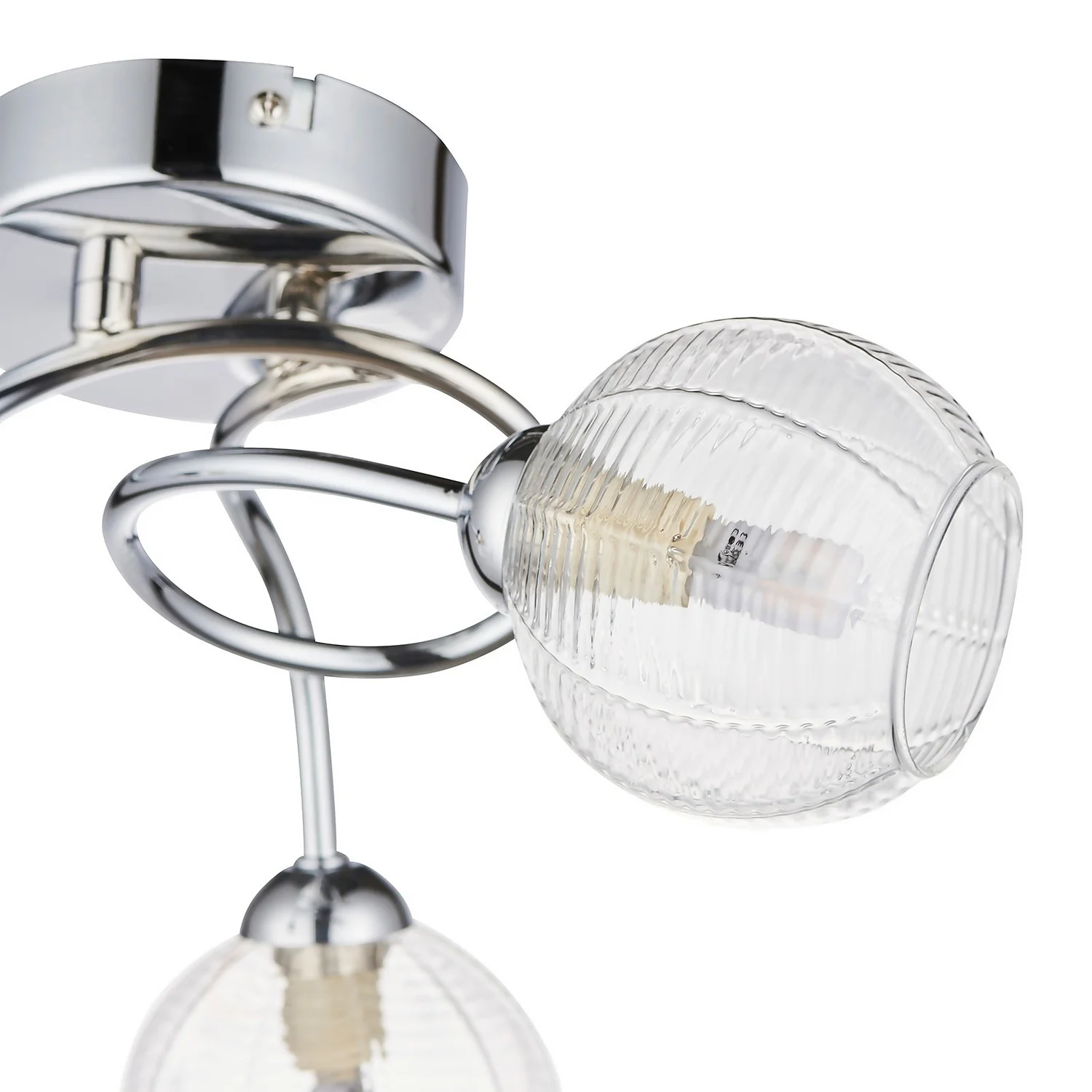 A lovely modern scluptural ceiling light. Chrome plated with complementary clear ribbed glass which creates a beautiful light effect when lit.