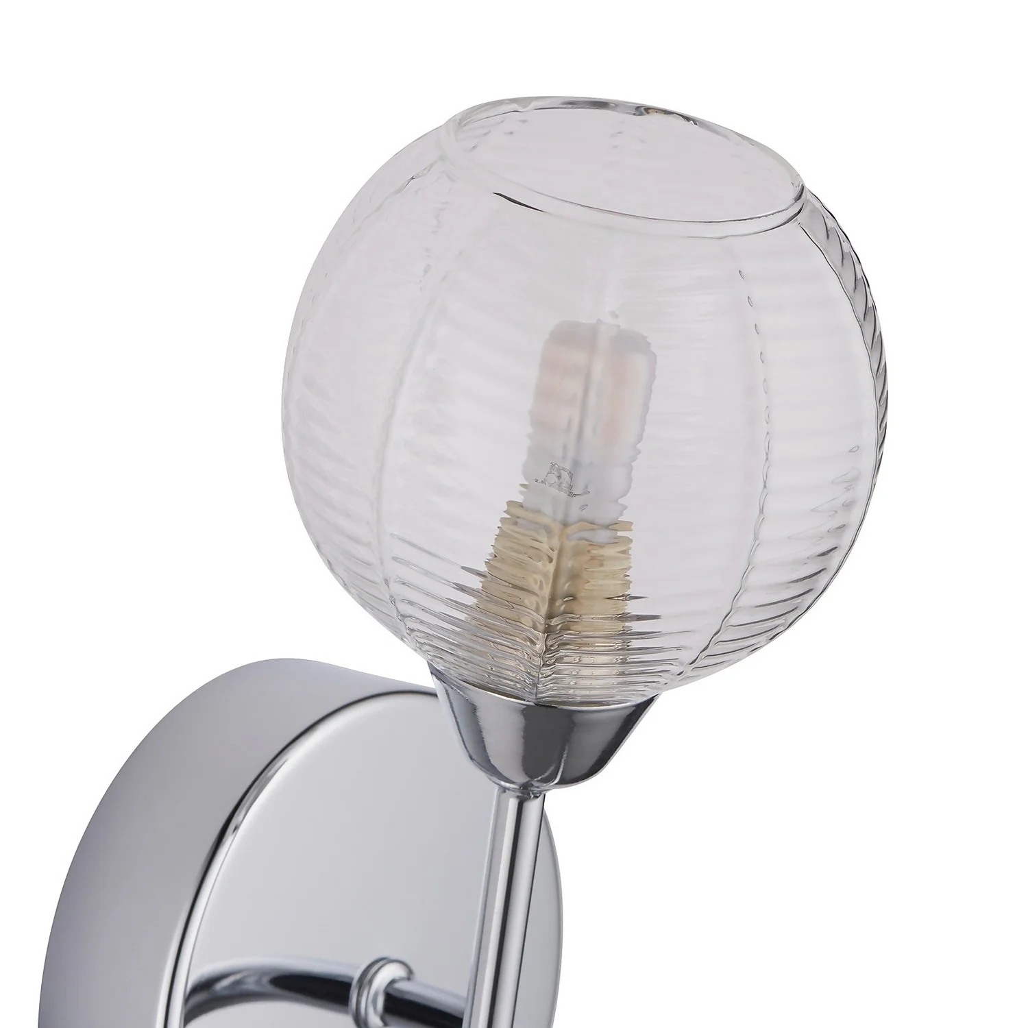 A lovely modern scluptural wall light. Chrome plated with complementary clear ribbed glass which creates a beautiful light effect when lit.