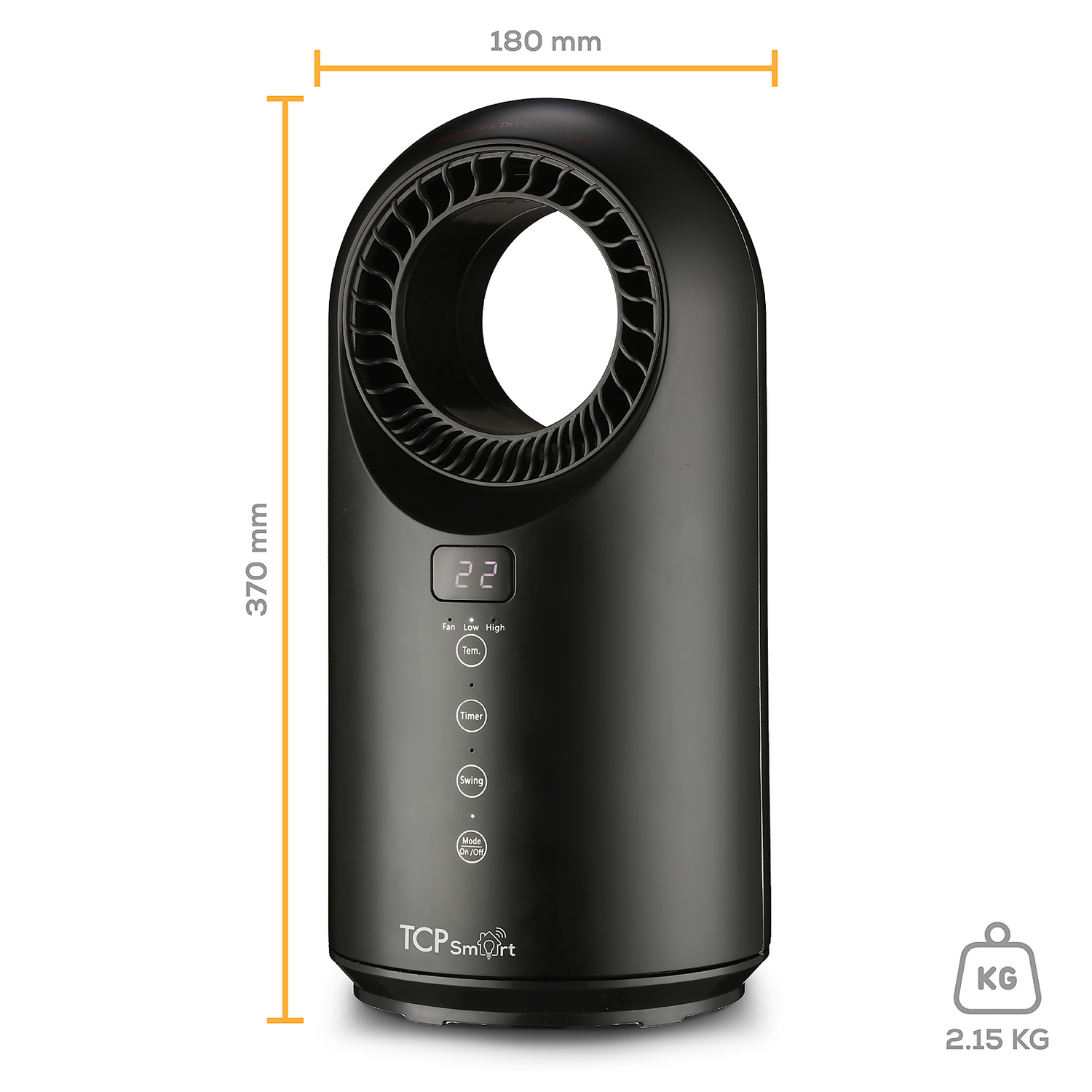 TCP Smart Wi-Fi Portable Bladeless Heating and Cooling fan. Such a wonderful design providing the best heating and cooling solution. The powerful 1500w ceramic heater is lightweight and portable and can be moved from room to room. Available in Gloss White and Matt Black. The Smart features allow for full voice via Alexa and Google. “Alexa set the room to 20 degrees, OK Google turn off the fanâ€. Direct control via the TCP Smart App and set schedules and times remotely. Save money through efficiently heating the room and not the home.