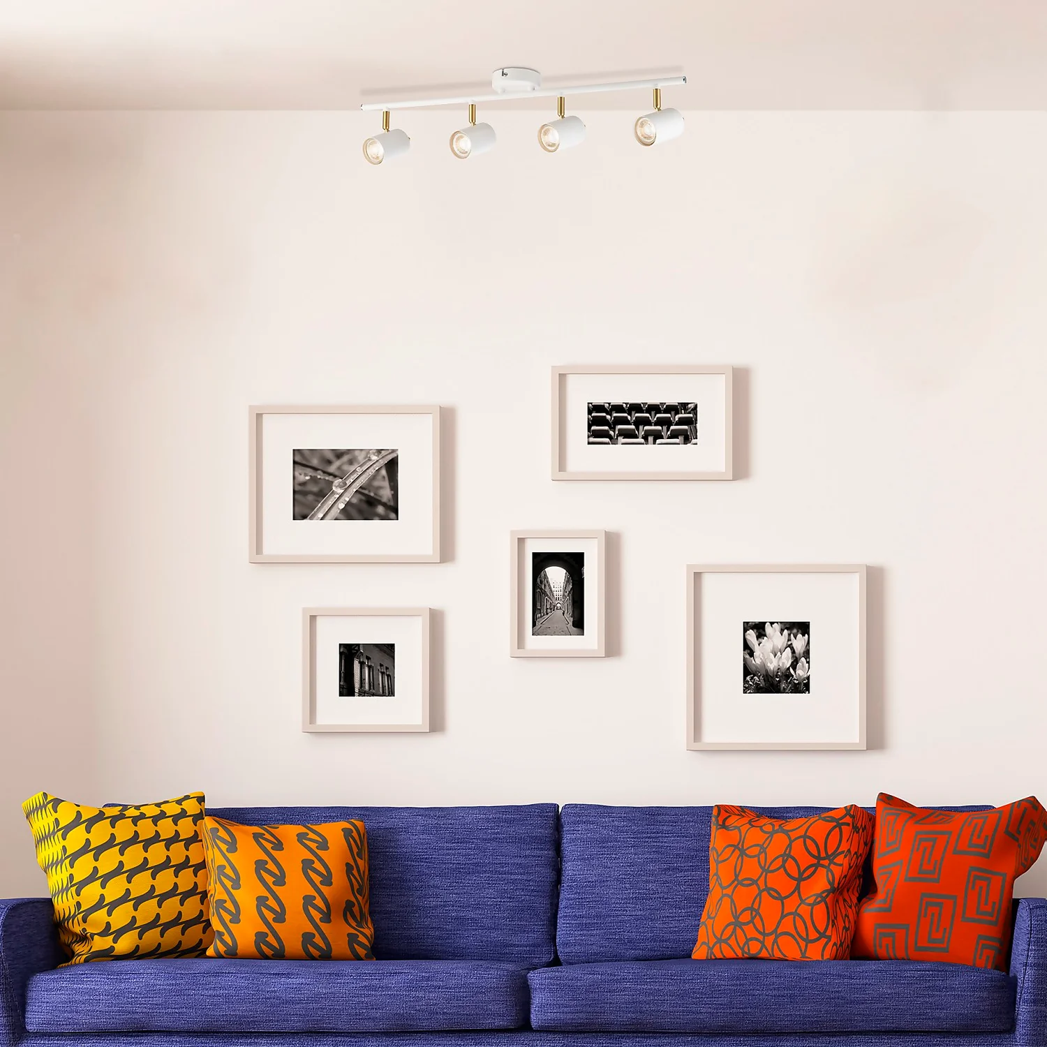 Thorpe 4 lamp track spotlight is hitting all the trends right now. The 4 adjustable matt white lamps with gold detailing make this spotlight bar an eye-catching choice of light. It means the only thing you need to worry about is which part of your home to shine your new spotlight on!