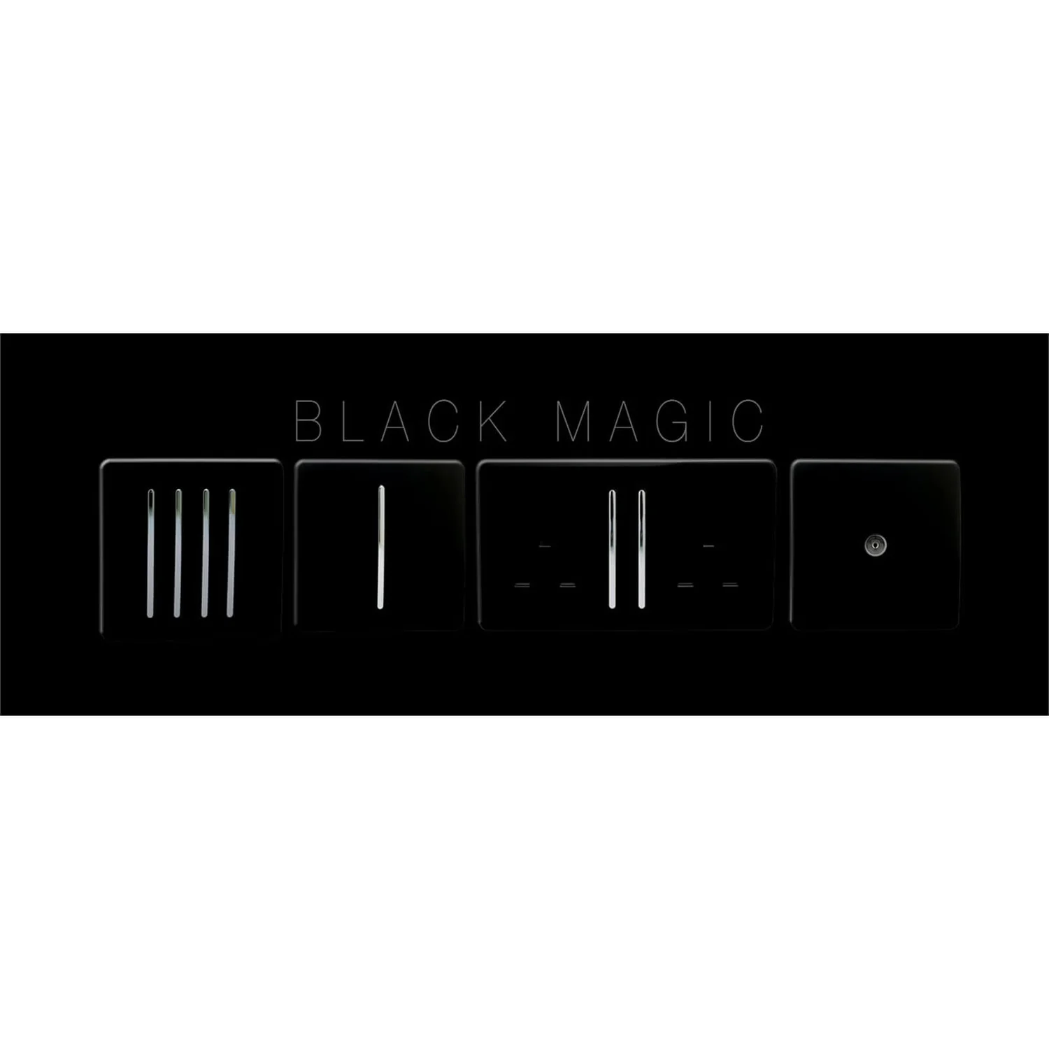 This model features a Gloss Black Finish and is part of the full Trendi Switch range. Operated by a long designer chrome vertical Rocker Light Switch, it not only looks good, but is nice and easy to locate and flick on and off.