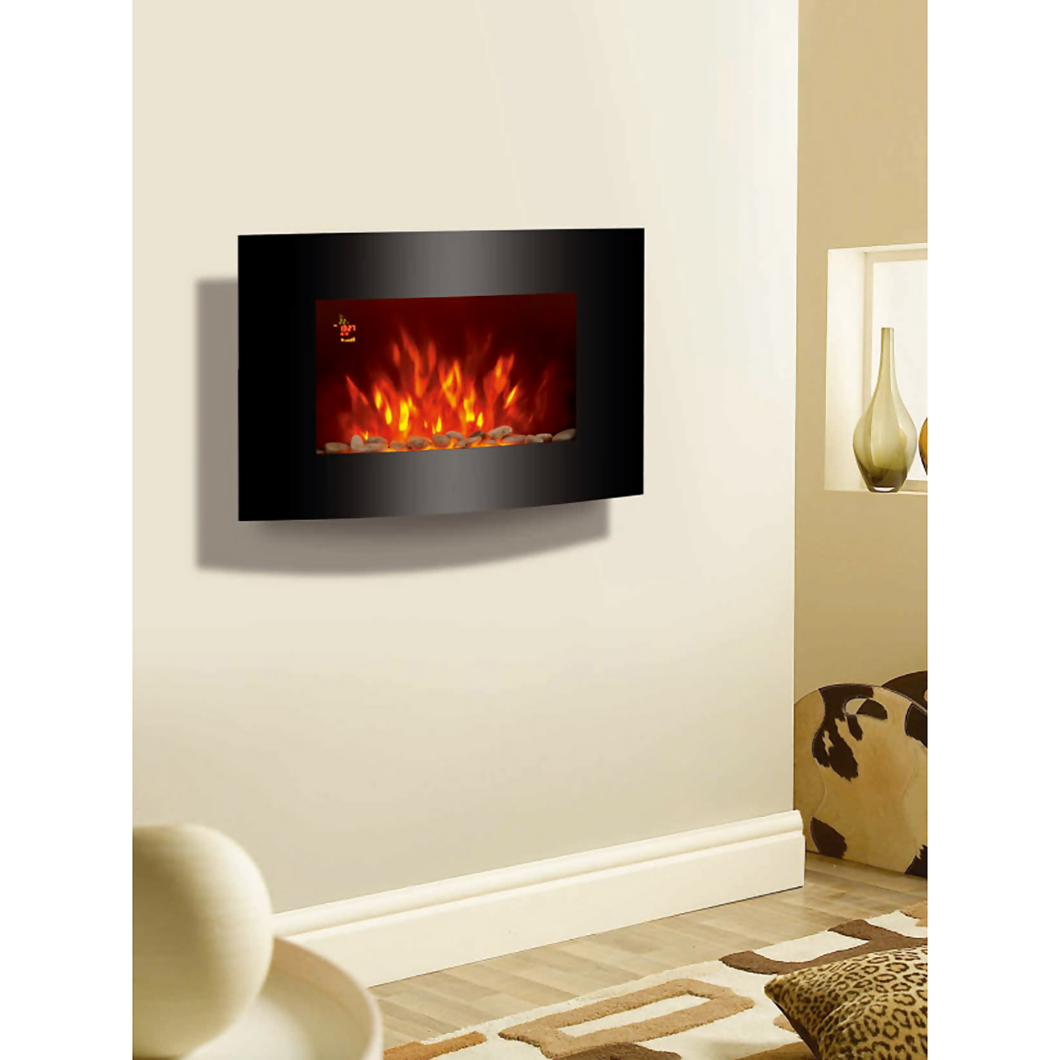 This Stylec fireplace heater with a realistic flame effect keeps your living space warm and cosy while giving you a wonderful comforting flame to watch. With its contemporary styling it’s sure to enhance any modern home.